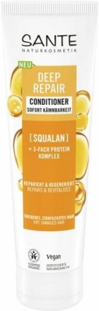 Sante Regenerační kondicionér Squalan & Proteinový komplex 150ml - Vyživuje, regeneruje a zlepšuje strukturu vlasů. Jemná, přirozeně účinná péče a zlepšuje rozčesatelnost, aniž by vlasy zatěžovala. S jemnou, čistě přírodní vůní. VEGAN.