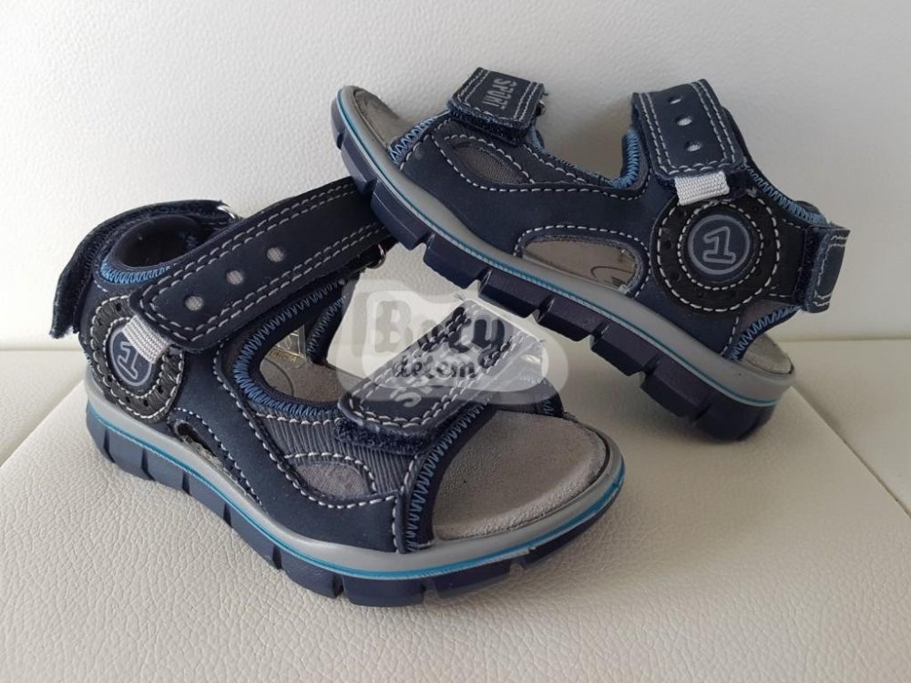 Krásné chlapecké sandály Santé v modré barvě s koženou stélkou. Zapínání na 3 suché zipy.