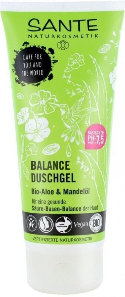 SANTE Balance sprchový gel s organickou aloe a mandlovým olejem zajišťuje zdravou acidobazickou rovnováhu pokožky a zbavuje pokožku oxidačního stresu. Složení s organickou aloe vera chrání pokožku před vysycháním při sprchování. Ideální pro každodenní použití.