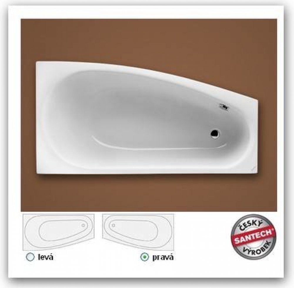 Santech akrylátové asymetrické do pravého rohu 30 kg bílé 150 cm 42.5 cm 80 cm