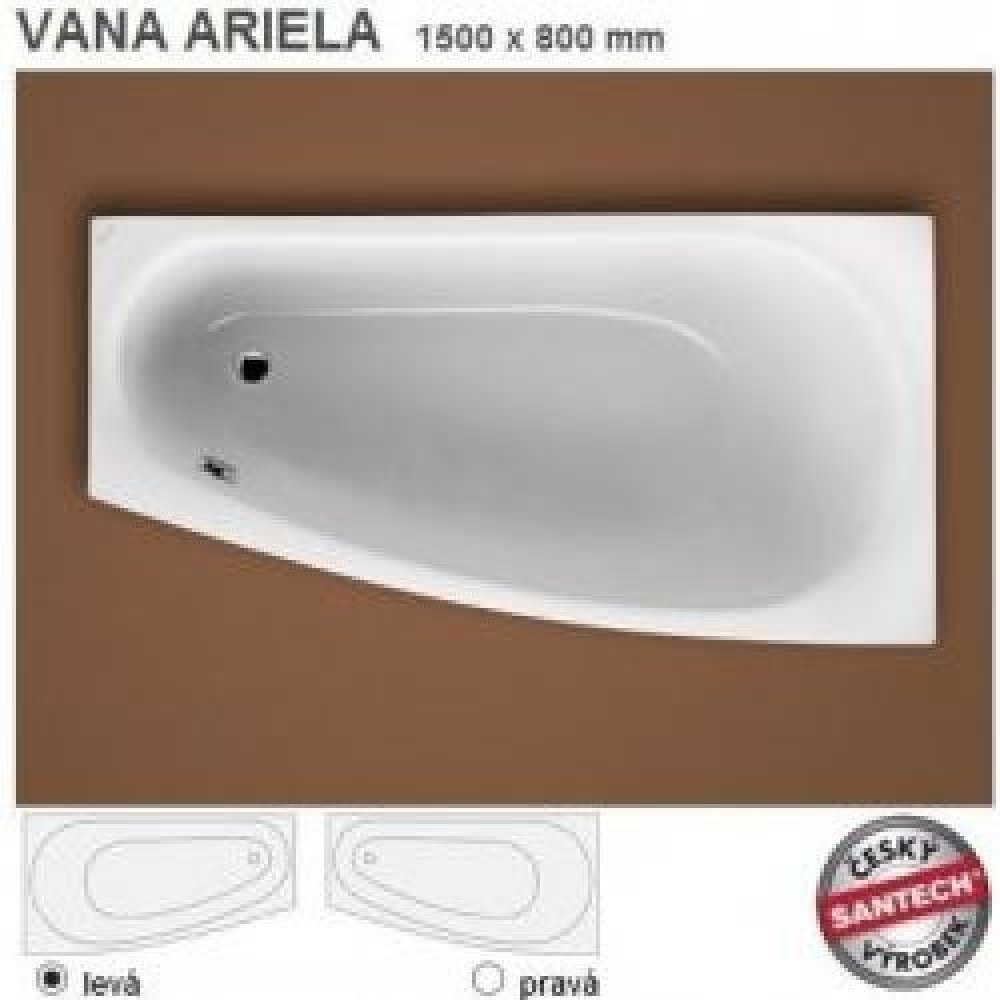 "Malá velká vana" - má bezkonkurenčně největší vnitřní prostor ve své kategorii. Zádová část je dokonce širší a pohodlnější - 80 cm oproti většině klasických van, které mají šířku 70 cm. Akrylátová vana Ariela vyniká svým jednoduchým designem a velkým prostorem. Díky těmto parametrům patří k jednomu z nejoblíbenějších modelů.
