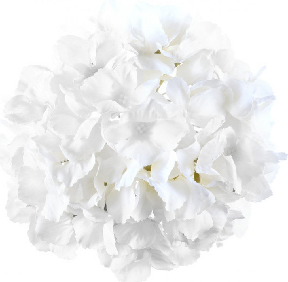 Umělá hortenzie je v bílé barvě v bohatém květu a skvěle vynikne především na svatebním stole. Může být umístěna na stolech jako středová výzdoba , viset na stěnách nebo na dveřích, nebo ji použít jako součást svatebního aranžmá.