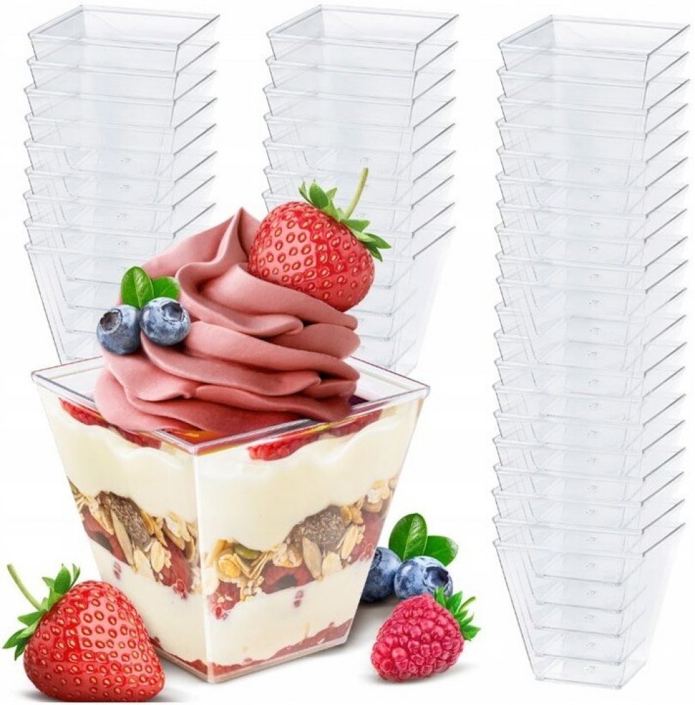 ✅Poháry čtvercové na svačinu 120 ml. Ideální pro různé koktejly, zmrzlinu nebo dezerty. Svačinka v tomto hrnečku nádherně ozdobí sladký koutek na svatbě nebo stůl na narozeninách nebo jiné příležitostné nebo obchodní akci.