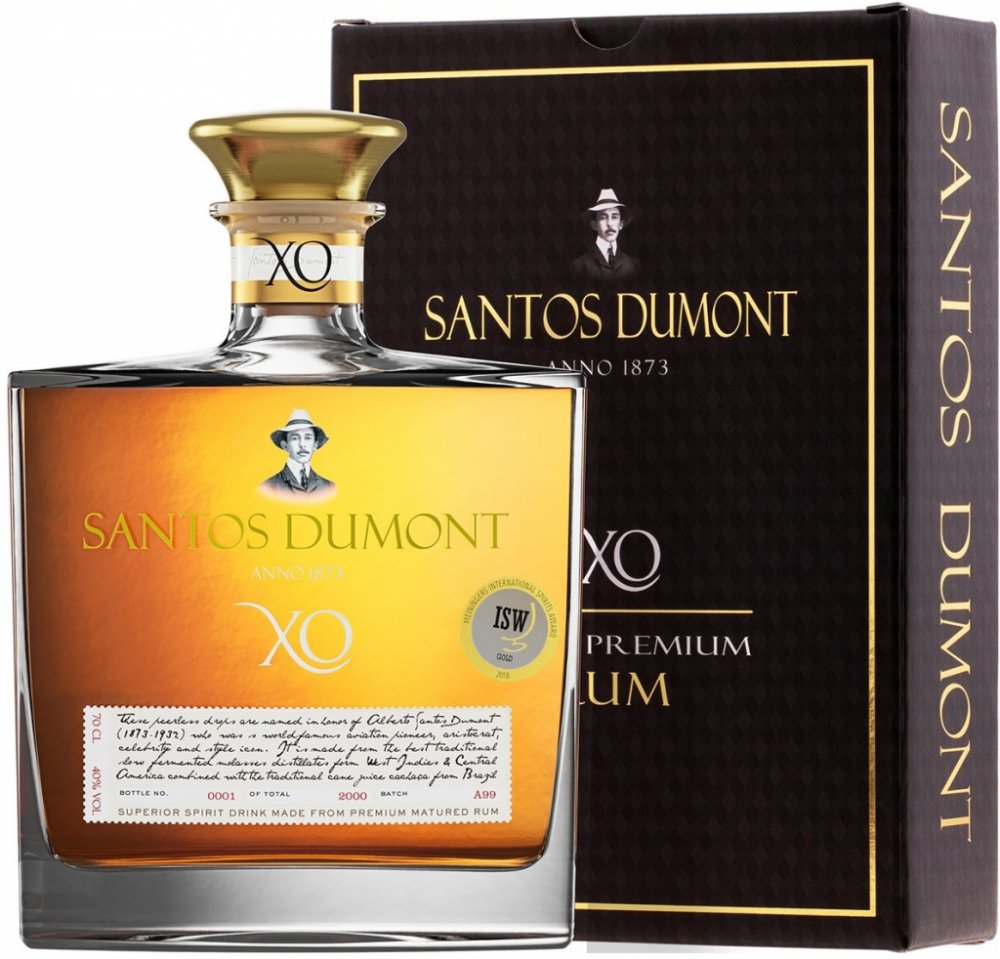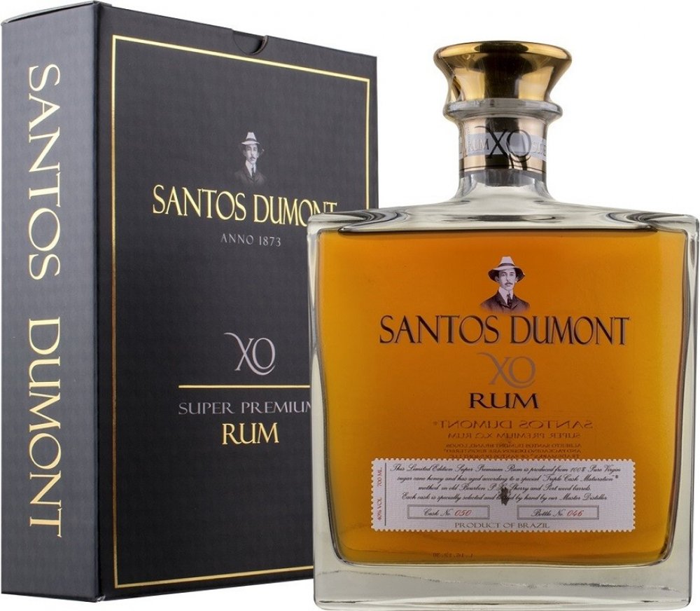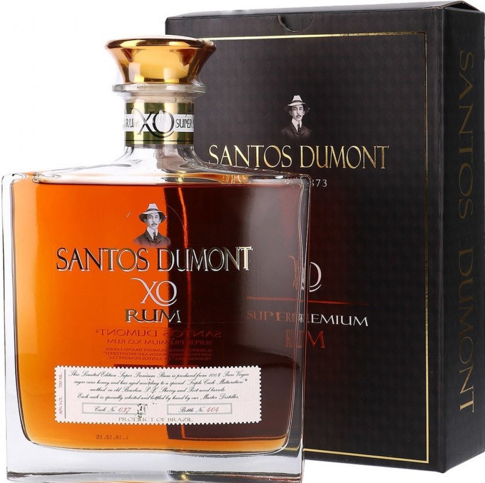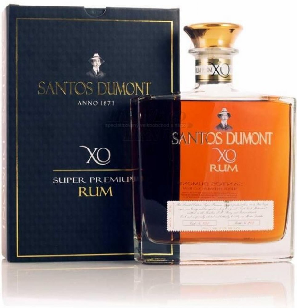 Rum SANTOS DUMONT XO je původem z Brazílie. Prochází velmi dlouhou dobou skladování. Prémiový rum je přibližně 20 let starý, díky čemuž je chuťově tak delikátní. Vyrábí se v malých sériích a v omezeném počtu, takže každá láhev je očíslována. Tento rum je doslova legendou a neměl by chybět ve vašem domácím baru. Nejlépe chutná čistý, ale lze přidat i do legendárních míchaných nápojů.