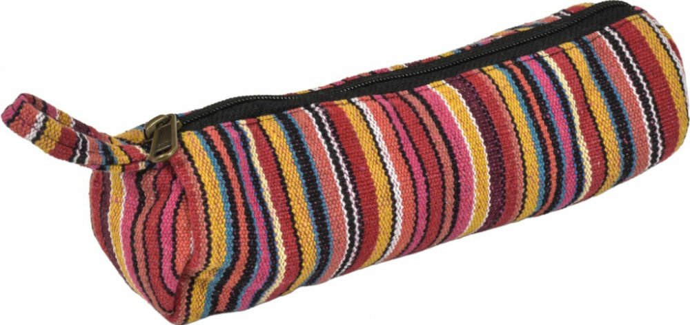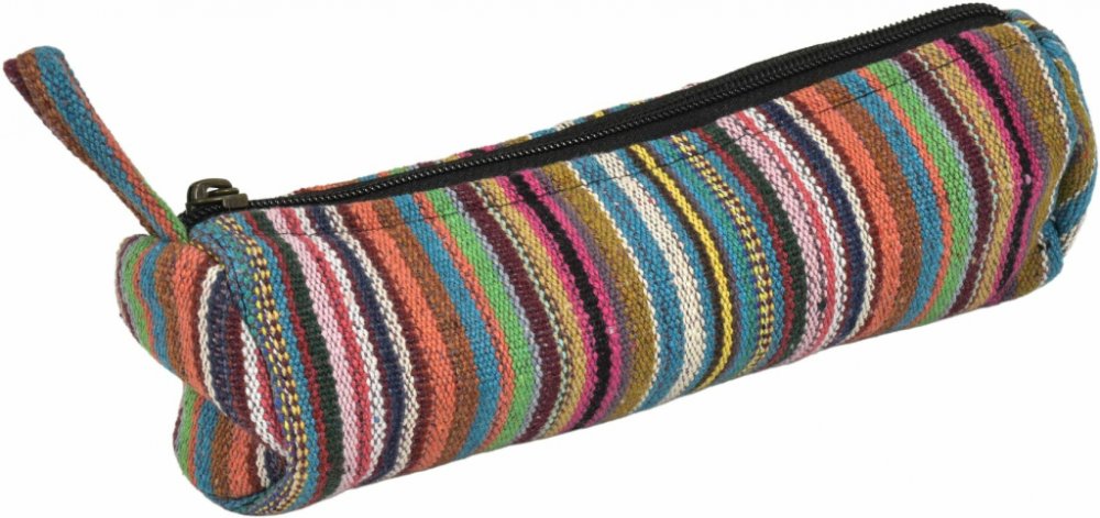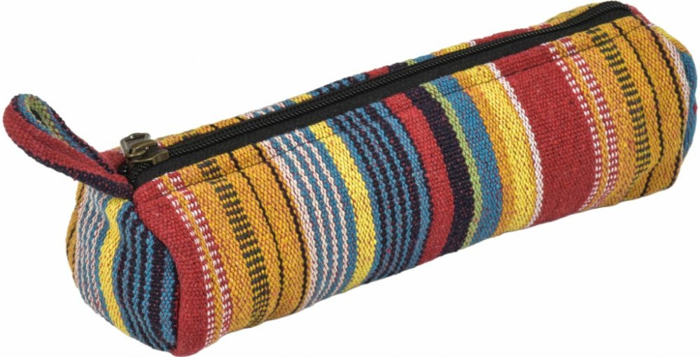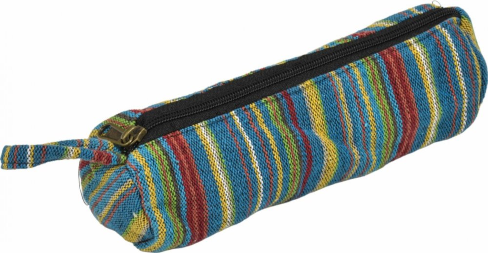 Pestrobarevný penál z bavlny je ideální na tužky, drobnosti nebo kosmetiku na cesty. Originální tkaný vzor v modrých tónech doplňují výrazné pruhy, díky kterým penál snadno najdete v kabelce i batohu. Praktické zapínání na zip udrží vše bezpečně uvnitř a poutko na boku umožní pohodlné nošení. Lehké, hravé a z Nepálu — drobný doplněk, který vám zpříjemní každý den.