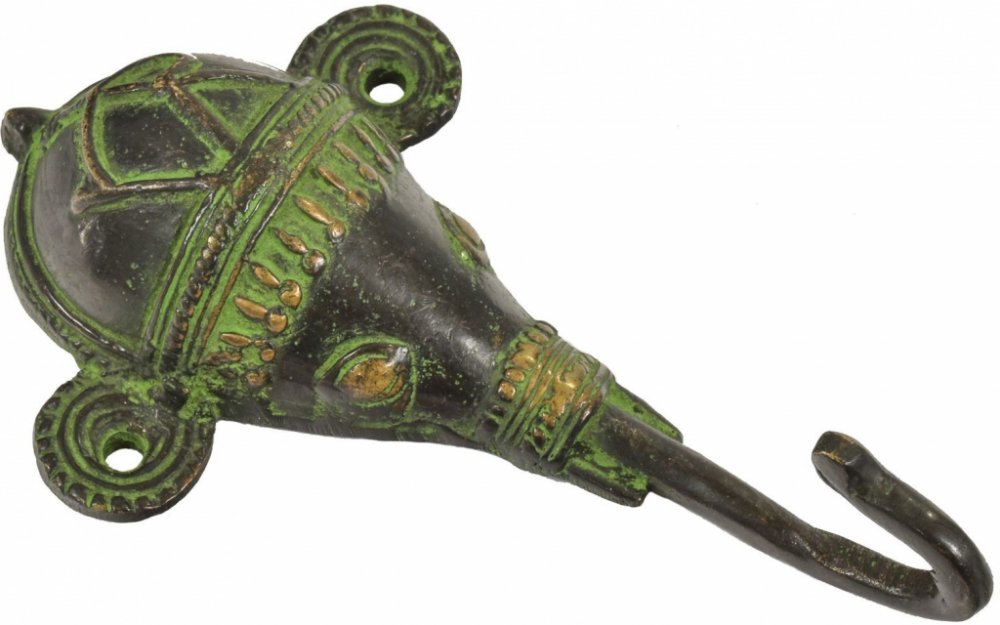 Hledáte věšák, který bude ve vašem domově vynikat? Tento zelený věšáček ve tvaru hlavy posvátné Ganéši "Tribal Art" oživí každou místnost. Můžete ho dát do předsíně, nebo například do pokoje a uvidíte, jak místnost rozveselí. Mosazný věšáček má zelenou barvu, která působí vintage dojmem a má jeden háček. Pochází z Indie a přinese k vám kus orientu.