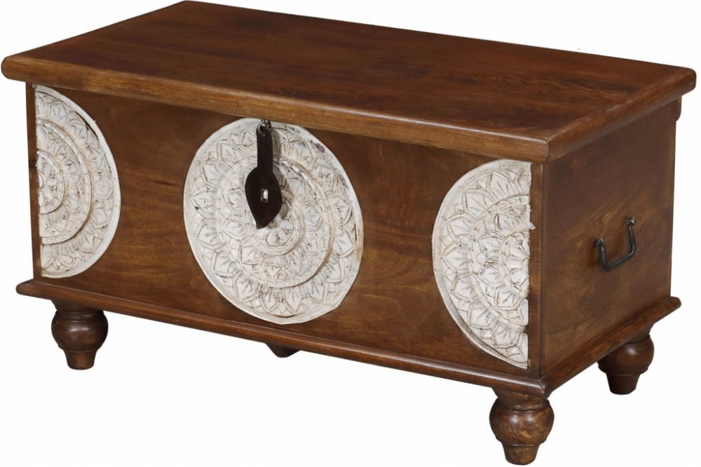 Zcela originální kousek, truhla z mangového dřeva bude ozdobou každého interiéru. Truhla je zdobená bílým ručním vyřezáváním a má hnědou barvu. Jedná se o ruční práci indických mistrů. Truhla nadchne nejen svým vzhledem, ale i úložným prostorem. Postará se o to, aby Vaše věci měli své místo. Zároveň ji můžete využít jako lavici k sezení. Pokud si do ní budete chtít ukrýt své poklady, doporučujeme ...