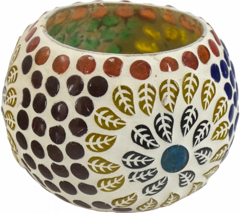 Sanu Babu Lampička, skleněná barevná mozaika, kulatá, průměr 9cm, výška 7cm (9H)