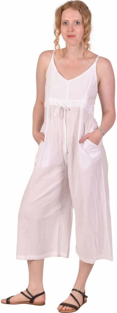 Jednoduchý tříčtvrteční overal v bílém provedení oživí váš šatník a bude vás provázet celé léto. Díky volnému střihu vám v něm bude dobře i v těch nejteplejších dnech. Je na ramínka a doplňují jej praktické kapsy na drobnosti. Užijte si pohodové léto s našimi stylovými kousky z Nepálu. Overal byl vyroben ze 100% bavlny.