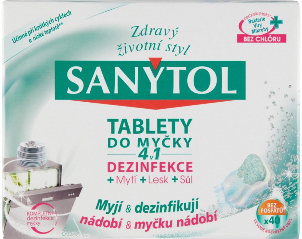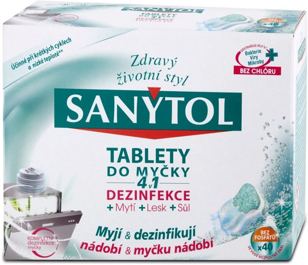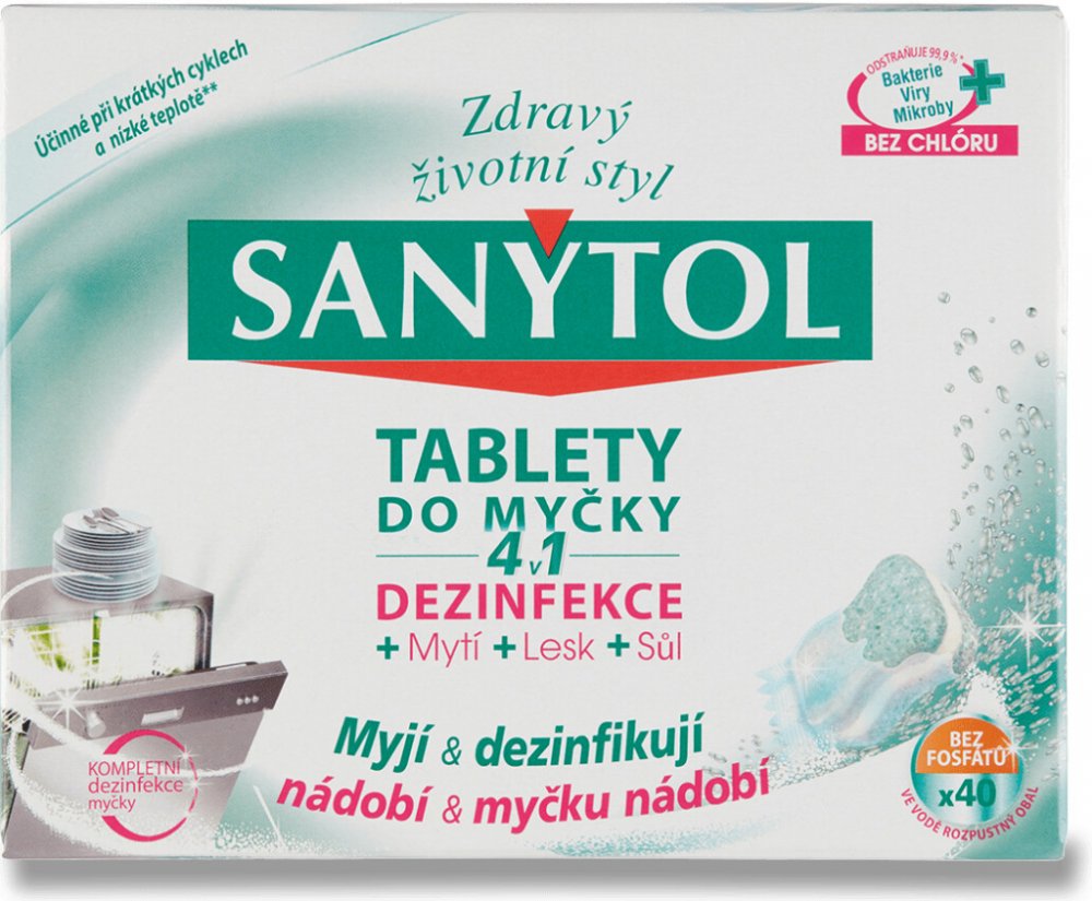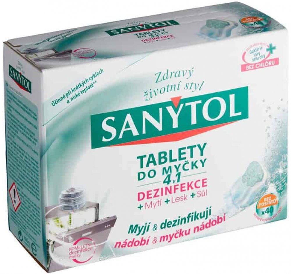 Velká část otrav jídlem pochází z domácí kuchyně. Proto je nezbytná dezinfekce, aby se zabránilo šíření nežádoucích mikroorganismuů. Sanytol, expert na dezinfekci bez chlóru vyvinul tablety do myčky na nádobí 4 v 1, které kombinují zároveň dezinfekci, mytí, sůl a oplach. Jejich jedinečné složení tak zajišťuje optimální čistotu nádobí (bez předoplachu) a vlastní myčky i při krátkých programech a mytí na nízké teplotě**.