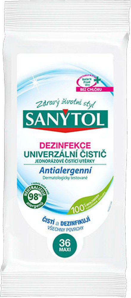 Sanytol, expert na dezinfekci bez chlóru, vyvinul praktické univerzální utěrky, které čistí, dezinfikuje a neutralizuje alergeny z roztočů, koček a pylů s 98% účinností. Eliminují bakterie, viry a plísně (zdroje alergií) ze všech druhů povrchů. Jeho jedinečné složení nezpůsobuje skvrny a zanechává svěží vůni čistoty. Utěrky se po použití jednoduše vyhodí do odpadkového koše.