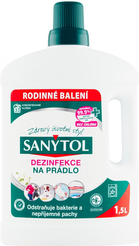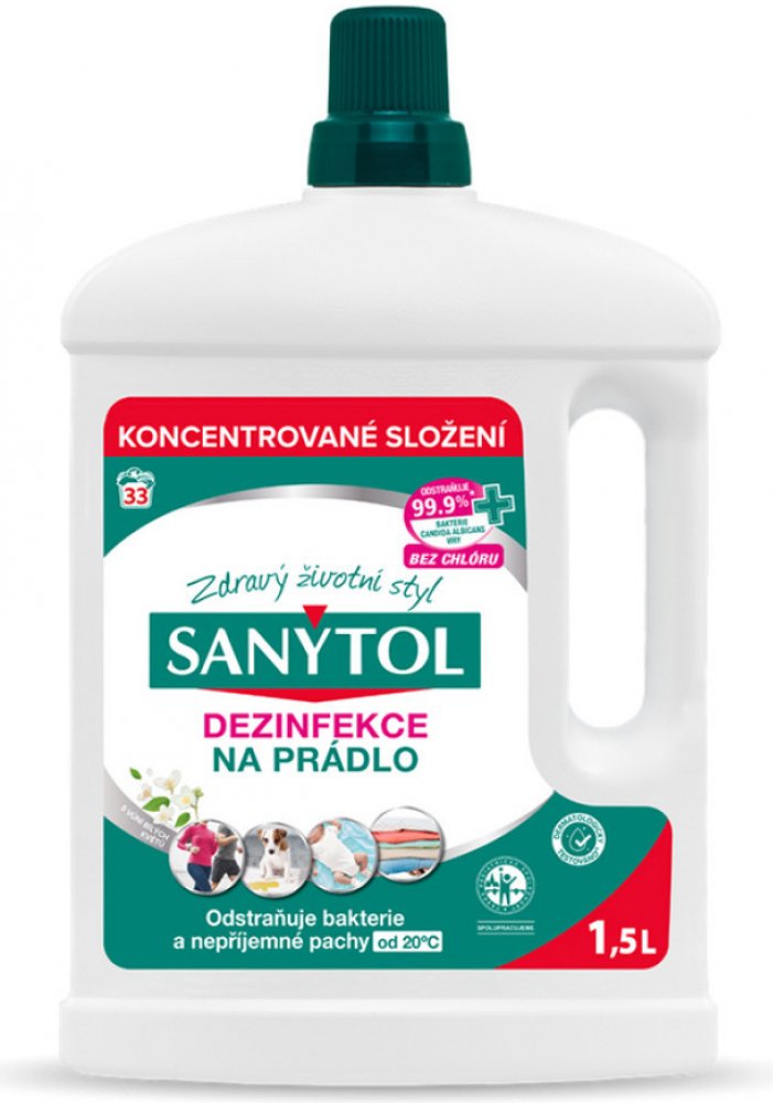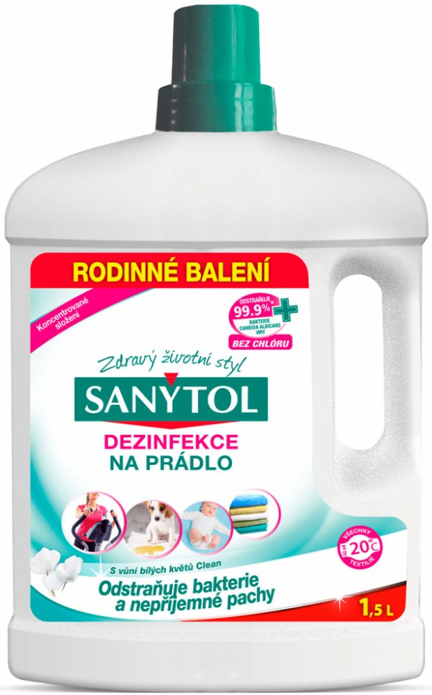 Během praní při nízkých teplotách se prádlo vypere, ale není vydezinfikováno. Sanytol ničí při všech teplotách bakterie, plísně, zbytky pracího prášku a vodního kamene a zanechává úžasný pocit svěžesti. Určený pro bílé i barevné textilie, neobsahuje chlór, ani složky, které by mohly narušovat vlákna či barvu textilie.
