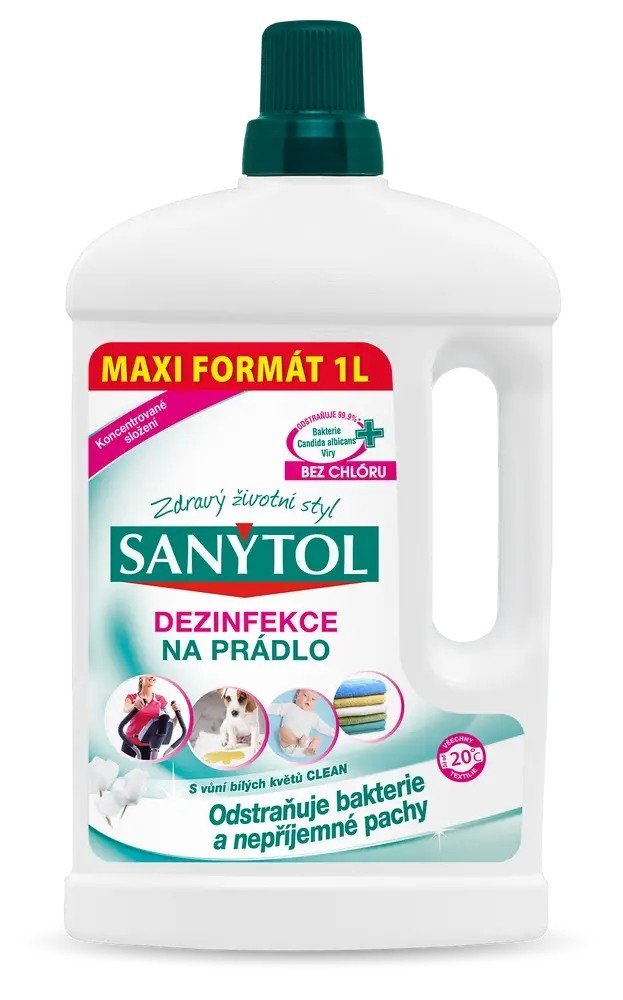 Během praní při nízkých teplotách se prádlo vypere, ale není vydezinfikováno. SANYTOL spolehlivě ničí při všech teplotách bakterie, viry, plísně, zbytky pracího prášku a vodního kamene a zanechává úžasný pocit svěžesti.