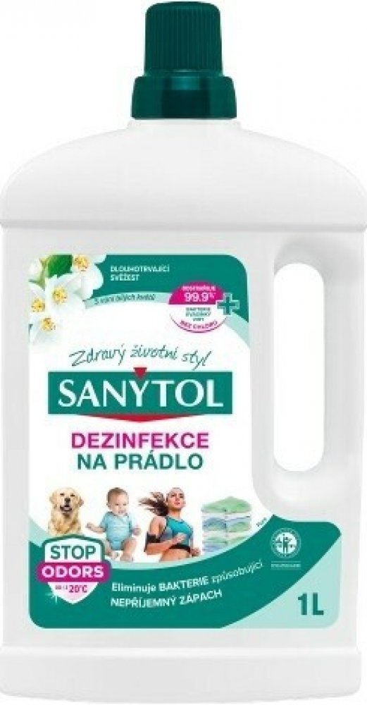 Dezinfekce na prádlo SANYTOL ničí bakterie, candida albicans, lidský koronavirus 229 E i virus chřipky H1N1, a to dokonce i při nízkých teplotách. Jeho jedinečné složení účinně odstraní neodbytný zápach a přitom respektuje vlákna na bílém i barevném prádle. Jeho svěží vůně dodává příjemný pocit čistoty.
