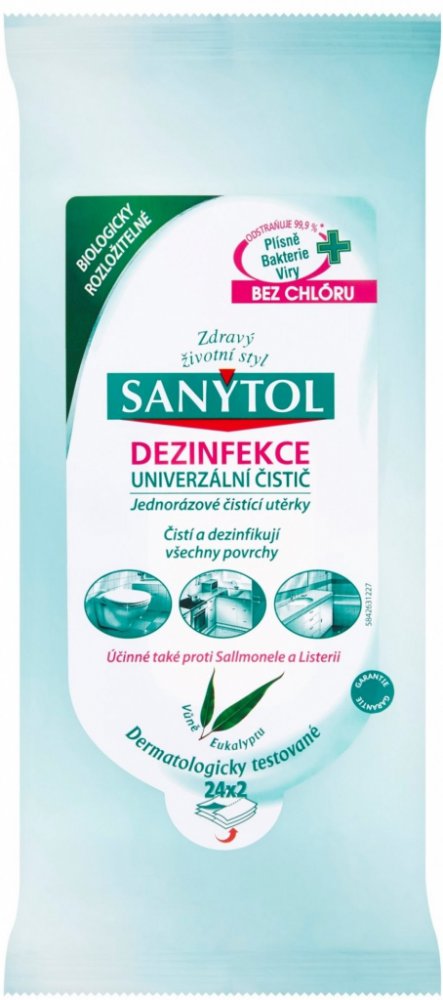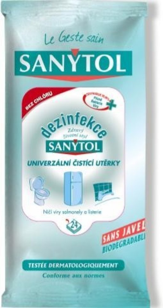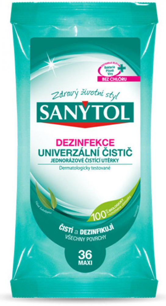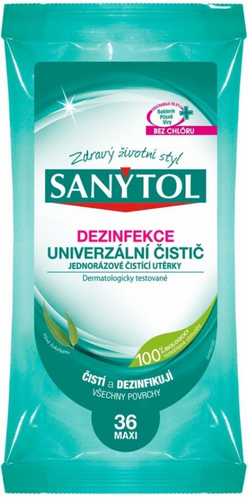 Sanytol Dezinfekce univerzální čistič - utěrky čistí a dezinfikují plochy. Preventivním a pravidelným používáním docílíte kontroly a regulování výskytu mikrobů v domácnosti. Trojí účinek – bakteriální, fungicidní a virucidní – odstraní 99,99 % virů, bakterií a plísní. Účinné také proti Sallmonele a Listerii. Zanechávají svěží vůní. Neobsahují chlór. Upozornění:Používejte biocidní přípravky bezpečn...