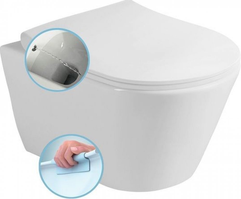 Rimless (NoRim) – toalety bez tradičního oplachového kruhu. Hladký povrch bez dutin a záhybů. Oplachová voda vytéká rozdělovačem vody pouze ze zadní části WC mísy a díky speciálnímu tvaru keramiky dokonale opláchne vnitřní prostor. Výhodou je snadná údržba a čištění WC mísy.