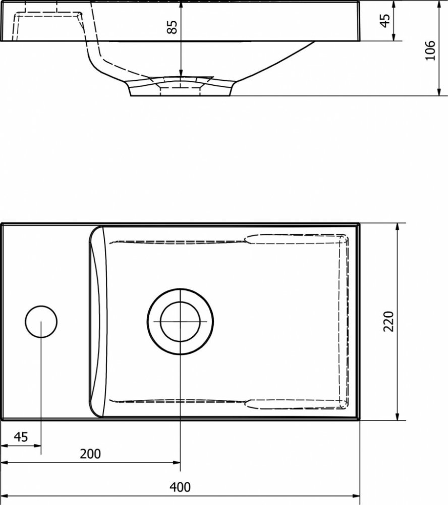 Sapho mramor 400 mm 220 mm 5 kg do nábytku 1 otvor 106 mm bílé obdélníková