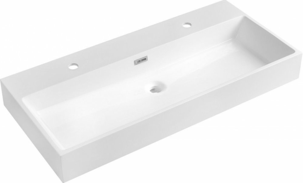 Sapho mramor dvojumyvadlo 1000 mm 460 mm 16 kg nástěnné 2 otvory 120 mm bílé obdélníková