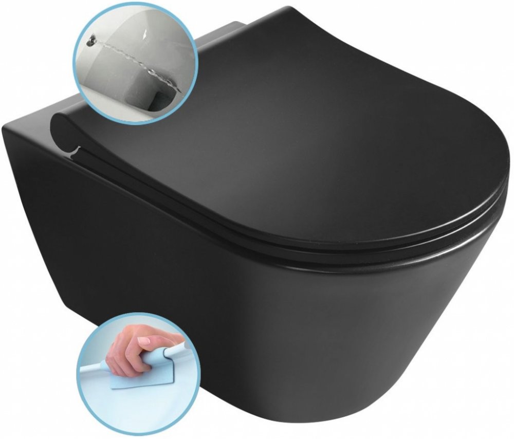 Rimless (NoRim) – toalety bez tradičního oplachového kruhu. Hladký povrch bez dutin a záhybů. Oplachová voda vytéká rozdělovačem vody pouze ze zadní části WC mísy a díky speciálnímu tvaru keramiky dokonale opláchne vnitřní prostor. Výhodou je snadná údržba a čištění WC mísy.