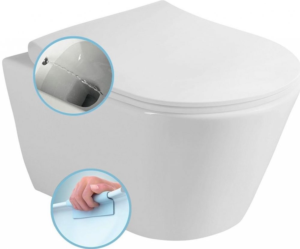 Technologie splachování Rimless Rimless (NoRim) – toalety bez tradičního oplachového kruhu. Hladký povrch bez dutin a záhybů. Oplachová voda vytéká rozdělovačem vody pouze ze zadní části WC mísy a díky speciálnímu tvaru keramiky dokonale opláchne vnitřní prostor. Výhodou je snadná údržba a čištění WC mísy. Samozřejmostí je duální systém splachování s množstvím vody 3 nebo 4,5 l. Bidetová sprška z pochromovaného ABS, s nastavitelnou tryskou Přívod vody do bidetové spršky je nezávisle na podomítkové nádržce WC sedátko je nutno objednat zvlášť Možnosti instalace za pomoci jednocestné podomítkové baterie a vyústění: 1/ vnitřní připojení: vývod vody k bidetové spršce lze umístit za WC mísu (viz montážní návod - varianta A), nutno dokoupit flexibilní hadičku FxF 3/8"-1/2" a podomítkovou baterii. 2/ vnější připojení: vývod vody k bidetové spršce lze umístit pod WC mísu nebo vedle mísy (viz montážní návod - varianta B). Nutno dokoupit flexibilní hadičku FxF 3/8"-1/2", vyústění a podomítkovou baterii. EAN: 8590913880445