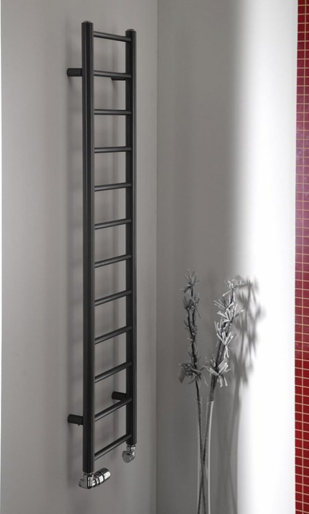 Elegantní koupelnový radiátor ze správně kombinovaných průměrů vodorovných a svislých trubek. Krása v jednoduchosti skloubená s atraktivním barevným provedením.