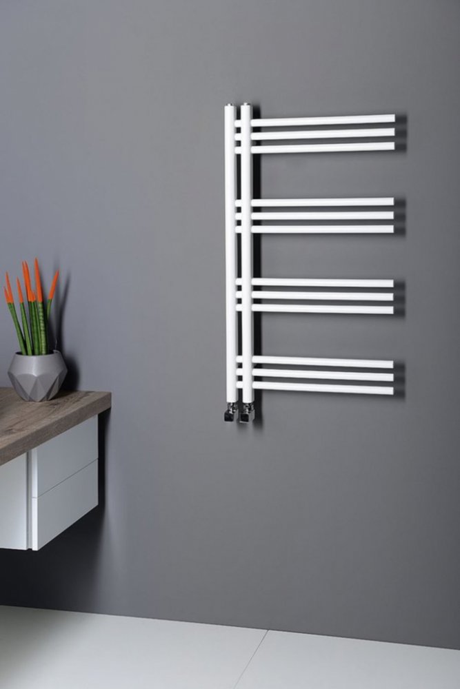 Designově tvarované koupelnové otopné těleso s výjimečným vzhledem je vyrobeno z ocelových trubek. U radiátoru oceníte zejména jeho praktičnost, díky své konstrukci umožňuje jednoduché a pohodlné zavěšení ručníků ze strany na horizontální tyče. Praktická rozteč 50 mm středového připojení umožňuje kombinovat s designovými ventily z naší nabídky i v kombinaci s elektrickou topnou tyčí.