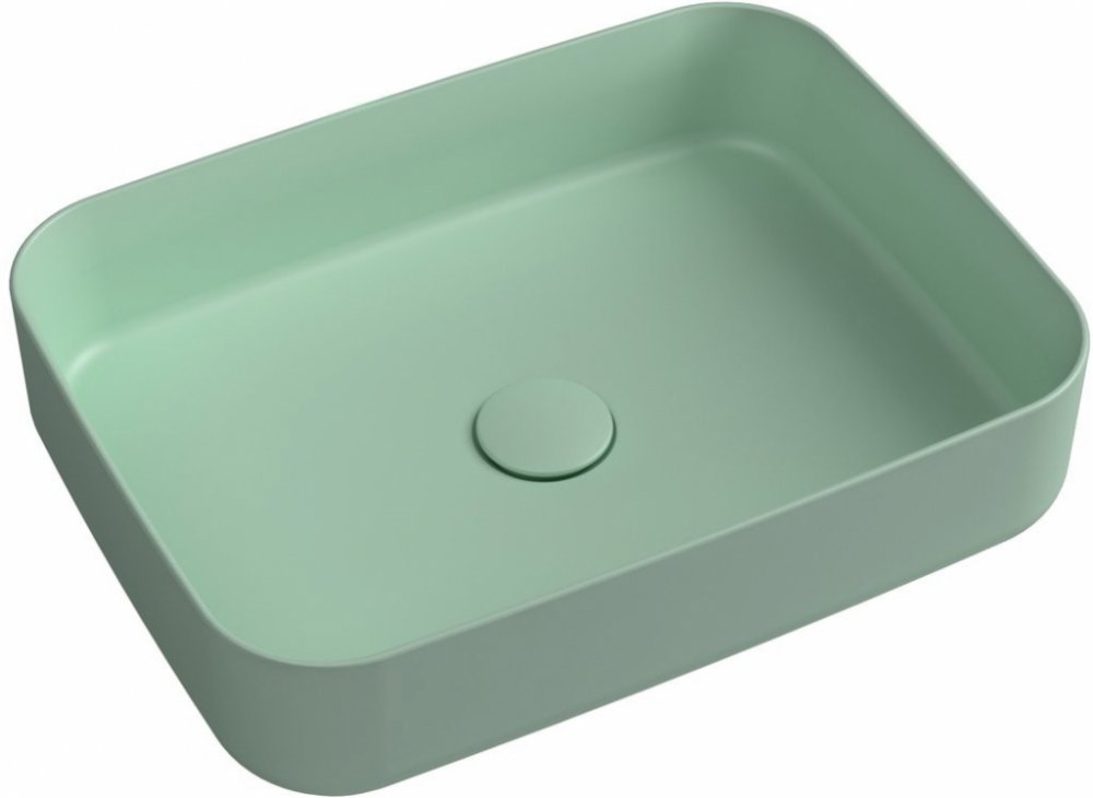 INFINITY RECTANGLE keramické umyvadlo na desku, 50x36 cm, zelená mat Mint.
