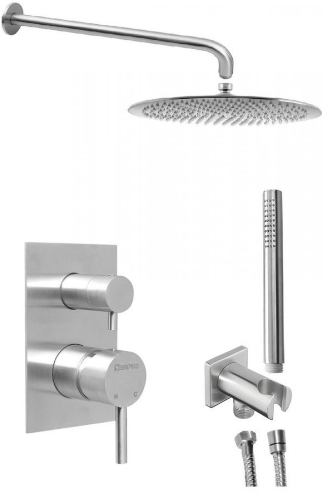 MINIMAL podomítkový sprchový set s pákovou baterií, 2 výstupy, nerez. Příjemně oblé tvary v nerez mat provedení.