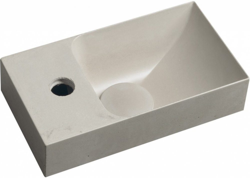 Betonová umyvadla PICCOLINO jsou jedinečná nejen použitým materiálem, ale především ruční výrobou. Každý kus je originálem, který nese otisk umu zručného řemeslníka. Jsou vyrobena litím speciální odlehčené směsi betonu do formy a naimpregnována proti nasákávání tekutin. Přiznaná pórovitá struktura betonu na vnější straně dodává umyvadlům syrový a jedinečný vzhled.