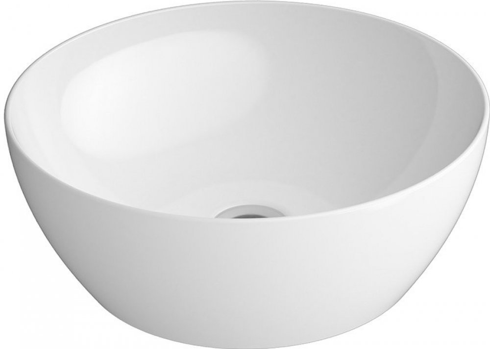 Umyvadlo na desku průměr 42 cm, bílá. Kombinace rovných ploch a zaoblených hran.