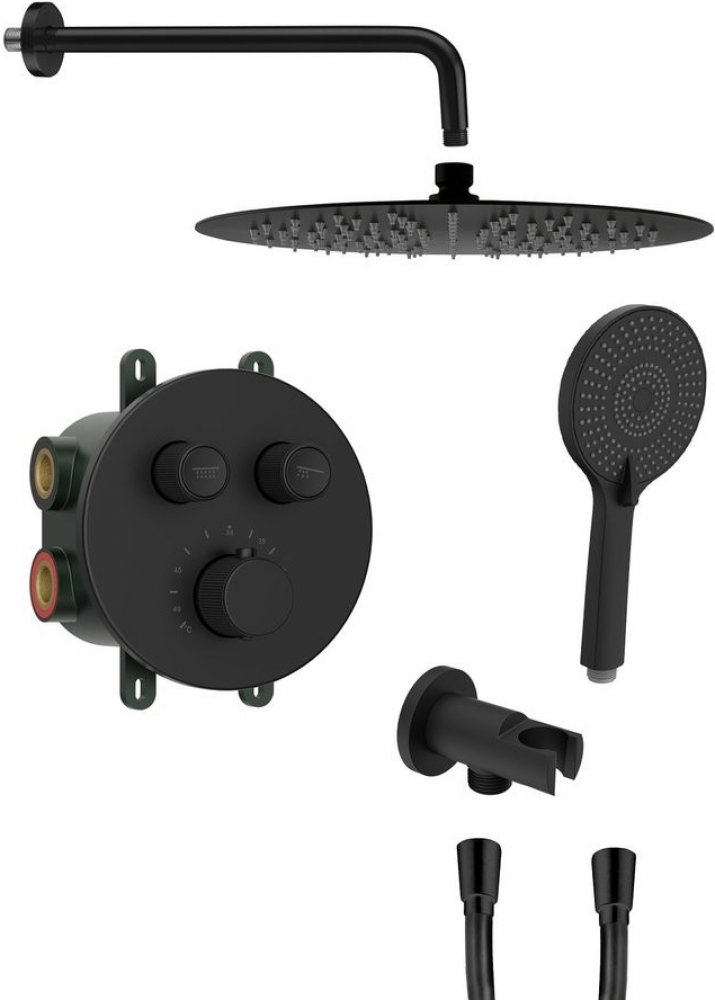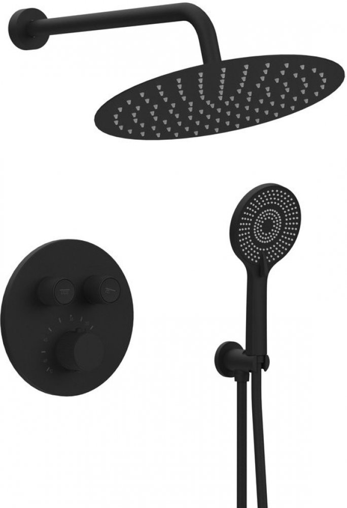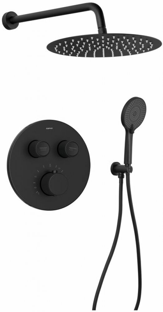 Sapho SMART SELECT podomítkový sprchový set s termostatickou baterií, 2 výstupy, vyústění, černá mat