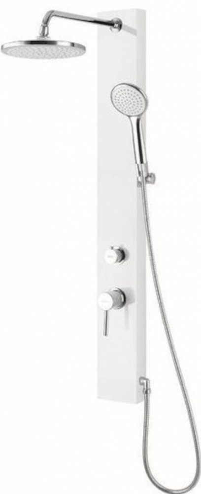 Sprchový panel FIGA nabízí výběr proudu vody z ruční nebo hlavové sprchy. Včetně pákové baterie, ruční a hlavové sprchy.
