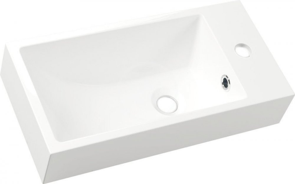 Umývátko Ariana z litého mramoru s baterií vpravo barva bílá materiál litý mramor rozměry 500 x 100 x 250 mm umístění baterie vpravo přepadová souprava součástí balení lze použít běžné umyvadlové šrouby bez použití plastových vložek určených pro keramická umyvadla s jedním otvorem s přepadem Umyvadla z litého mramoru jsou odlita ze speciální směsi, jejímiž hlavními složkami jsou mletý vápenec a ep...
