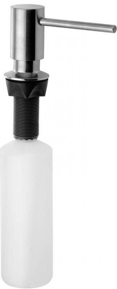 Zápustný dávkovač mýdla a saponátu s možností instalace do umyvadla místo stojánkové baterie, nebo do desky vedle umyvadla či dřezu.