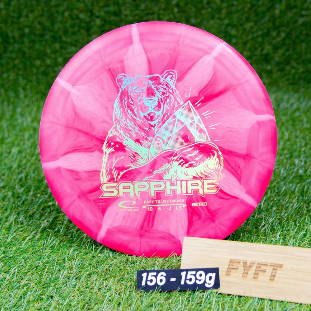 Na co se hodí? Na dlouhé hody vhodné pro mírně pokročilé začátečníky i s menší silou. Proč tento? Rychlý, lehký a přesto snadný na uchopení a kontrolu. Sapphire navazuje na velmi oblíbený driver Diamond a prodlužuje jej. Má tenký profil a dobře padne i do menší ruky. Těm, kteří časem vychytají techniku a výrazně zesílí se bude disk stáčet k zemi a začne rolovat - použití jako utility disk jako roller. Charakteristika: Speed: 10. Glide: 6. Turn: -2. Fade: 1,5. Materiály LATITUDE64°: OPTO - velice odolný, vydrží roky, většinou průhledný. GOLD - velice odolný, vydrží roky, obsahuje příměs pro lepší úchop. RETRO - dostupný ale méně odolný, poznačí jej každý náraz do stromu. Skvěle se drží i za vlhka. Neohebný. ZERO - dostupný, skvěle se drží ale méně odolný, vhodný na puttery (ty neschytávají takové rany). Varianty SOFT/MEDIUM/HARD jsou různě ohebné, HARD bývá stabilnější. Výrobce LATITUDE64°: Latitude zápasí s Innovou o 1. místo mezi nejpoužívanějšími disky. 64Latitude° znamená zeměpisná šířka 64° - geografické umístění horské vesničky ve Švédsku s populací kolem 2000 obyvatel - Bergsbyn, kde sídlí komunita šesti discgolfových hráčů, z nichž 2 jsou juniorští mistři světa, 4 mistři Evropy, 2 mistři světa, a vítězové mistrovství Švédska od roku 1995 dodnes. A tahle parta se rozhodla začít disky vyrábět.