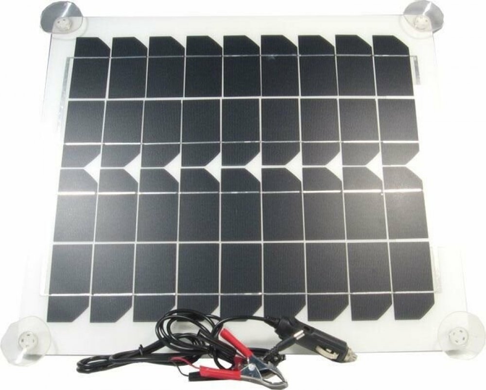 Flexibilní monokrystalický panel s výstupem 12V a USB pro nabíjení baterií, telefonů, powerbank a pod. Ideální řešení pro Vaši autobaterii v případě delší odstávky vozidla, kdy trvale připojené spotřebiče, jako je řídící jednotka, autorádio nebo dálkové ovládání dokážou vybít startovací baterii i za pouhý týden. Přiložený kabel zapojte do zásuvky 12V (nutné trvalé propojení s baterií, nikoli přesklíček zapalování), panel umístěte pomocí přísavek za okno a Vaši baterii bude dodávána potřebná energie pro kompenzaci spotřeby připojených zařízení a samovybíjení. Panel je rovněž možno využít jakozáložní zdroj pro nabíjení telefonů, powerbank apod.