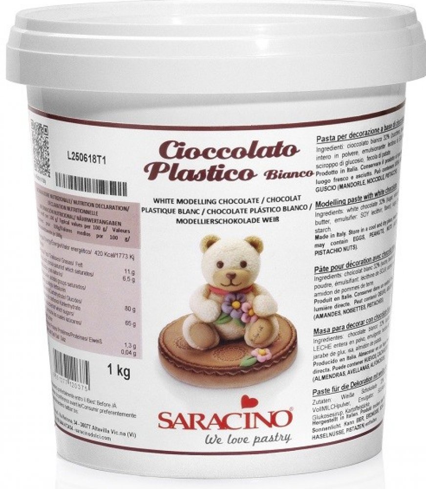 Saracino Modelling Paste – White (bílá) je profesionální modelovací pasta pro tvorbu 3D dekorací, figurek, květin a drobných cukrářských detailů. Tato bílá varianta je základní barvou celé řady Saracino – ideální pro tónování barvami, míchání odstínů nebo přímé použití.