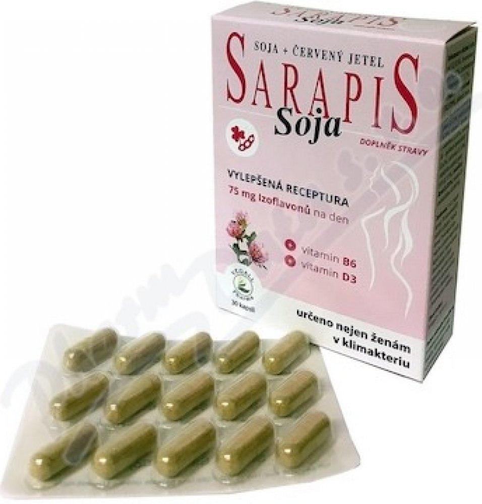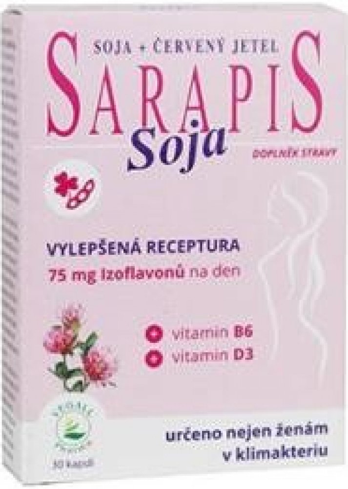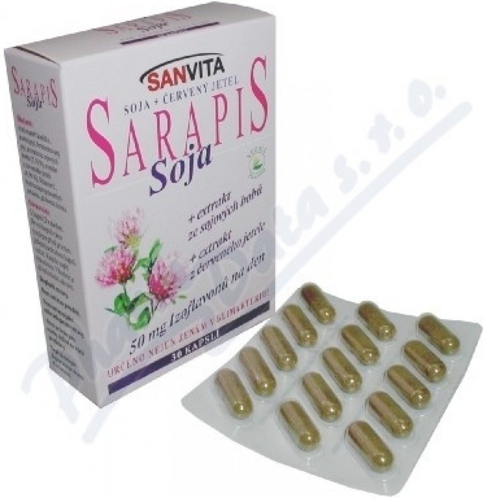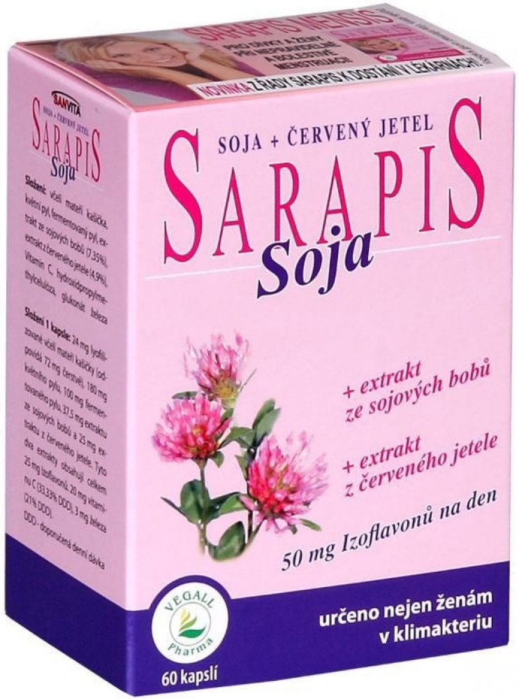 - Kombinace látek obsažených v Sarapisu Soja příznivě působí na nepříjemné tělesné projevy klimakteria (tzv. vegetativní syndrom).