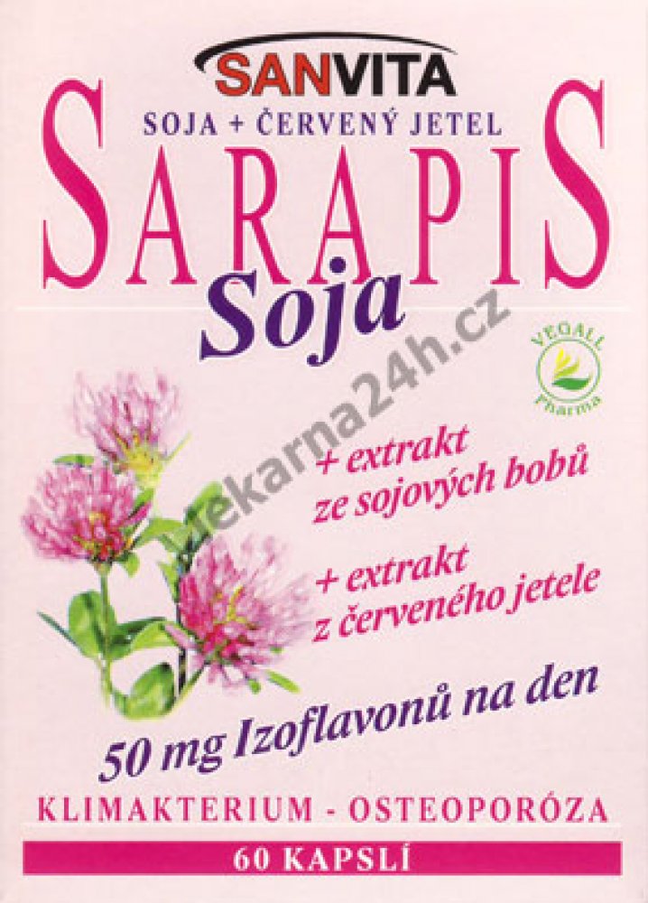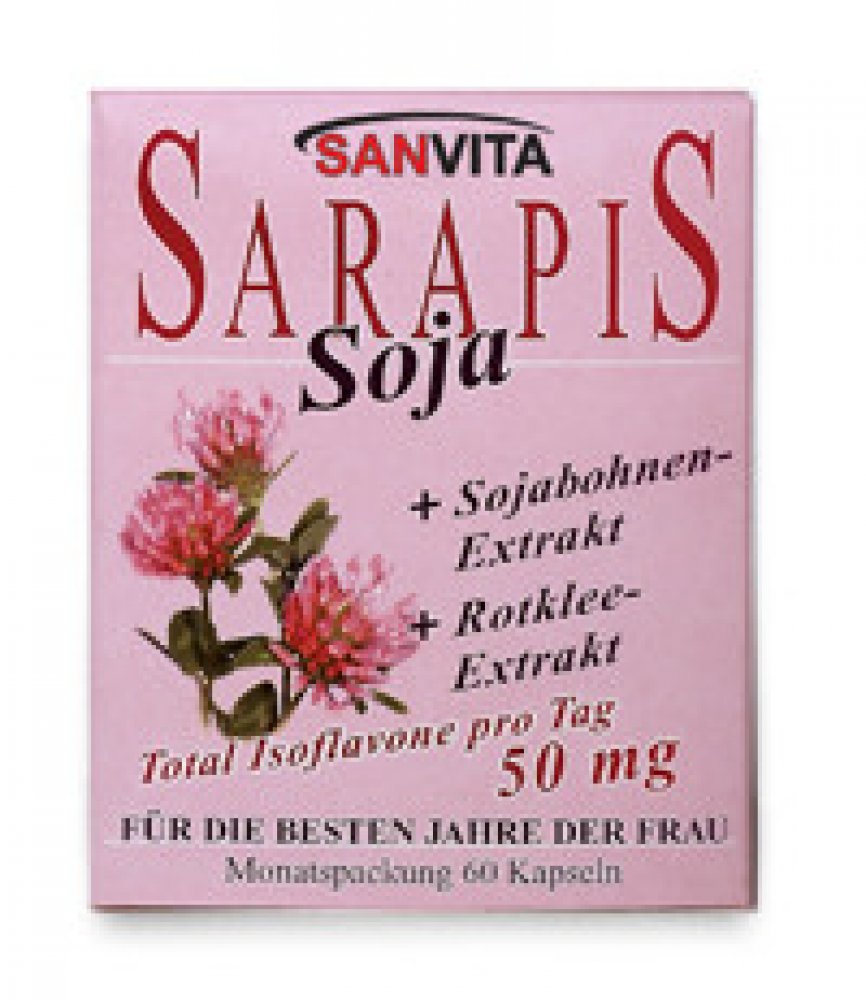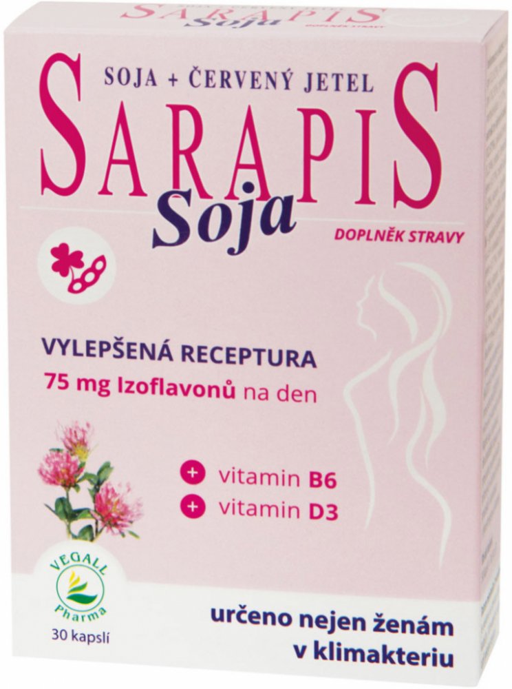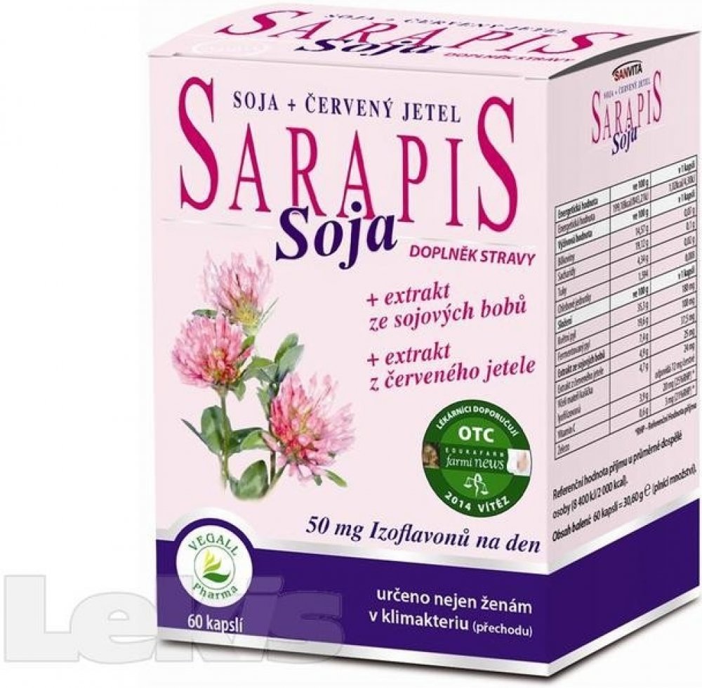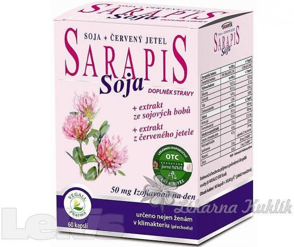 - Kombinace látek obsažených v Sarapisu Soja příznivě působí na nepříjemné tělesné projevy klimakteria (tzv. vegetativní syndrom).