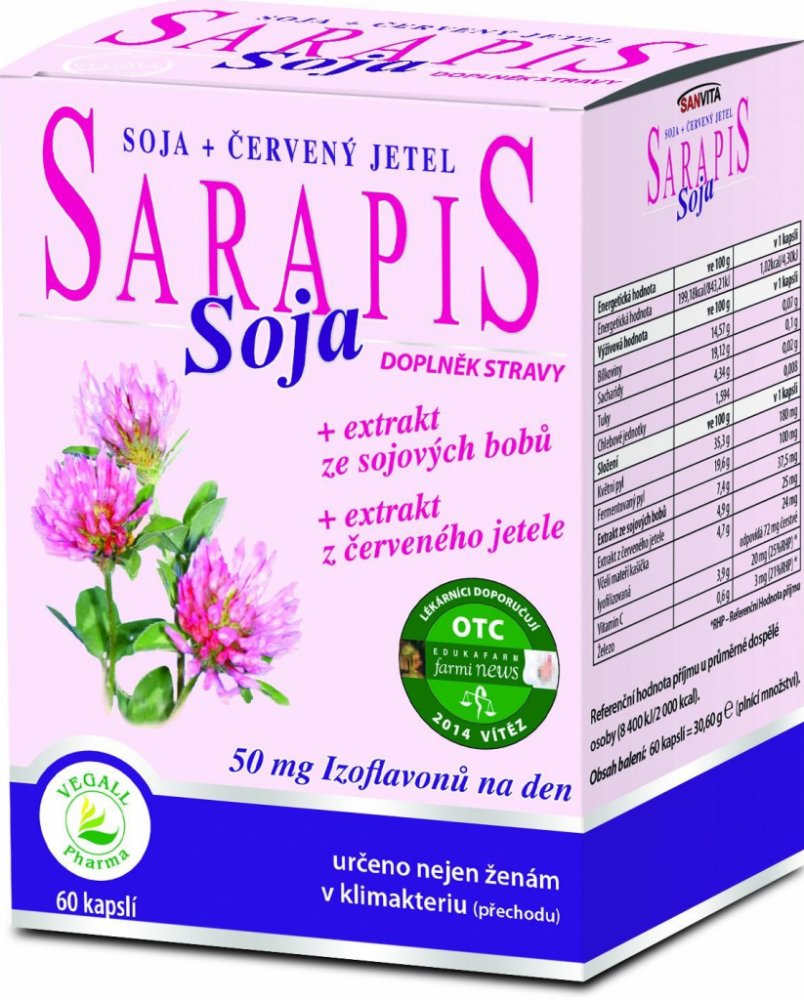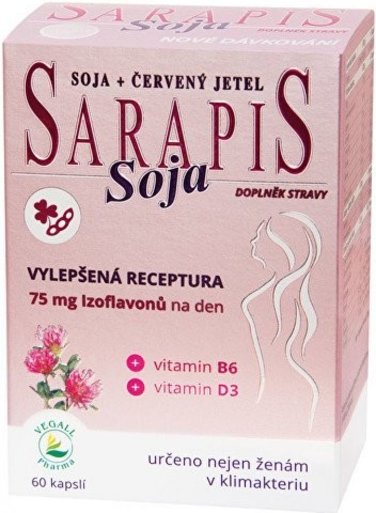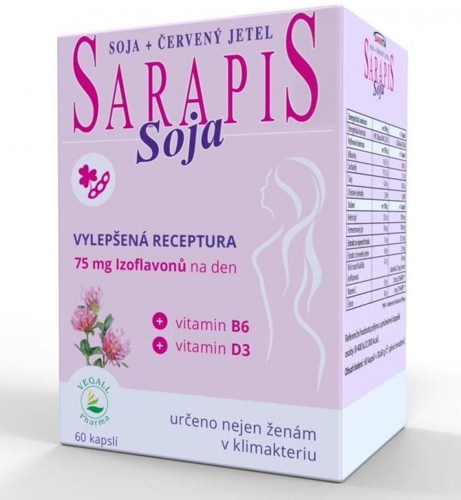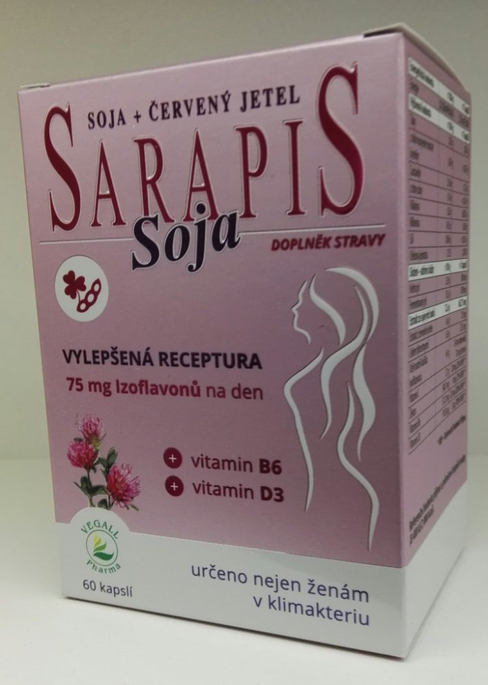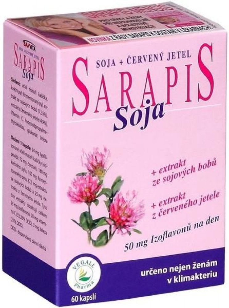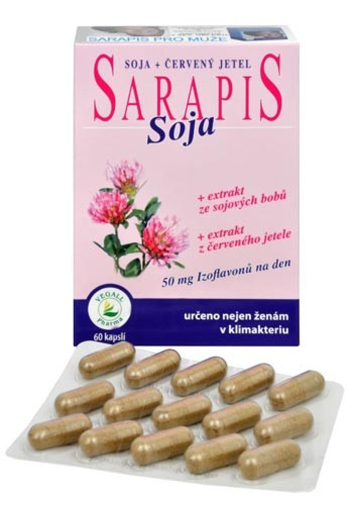 Kombinace látek obsažených v Sarapisu Soja příznivě působí na nepříjemné tělesné projevy klimakteria (tzv. vegetativní syndrom).