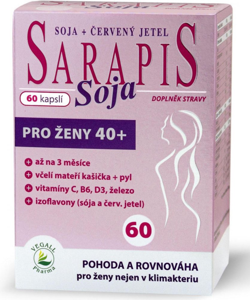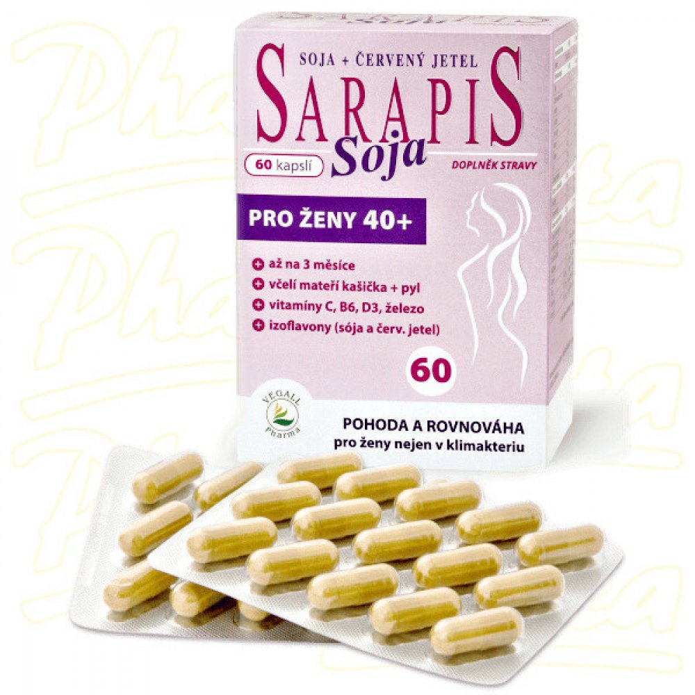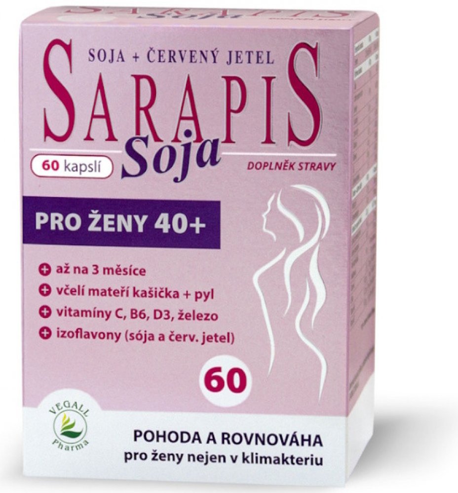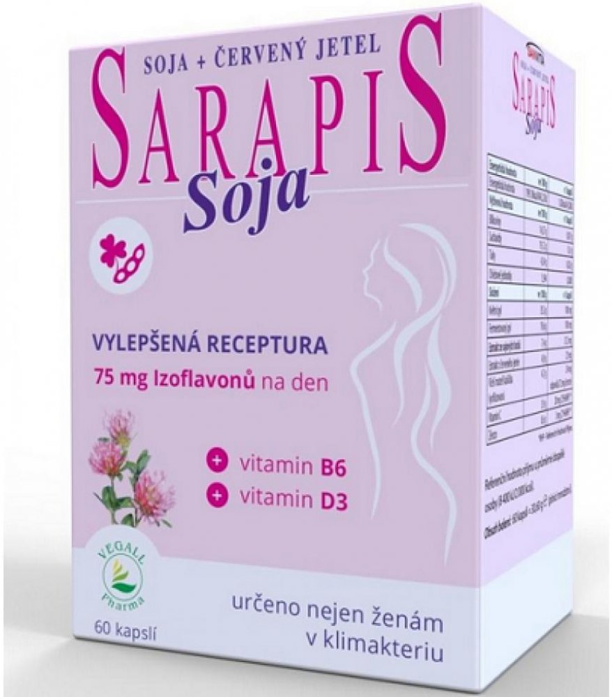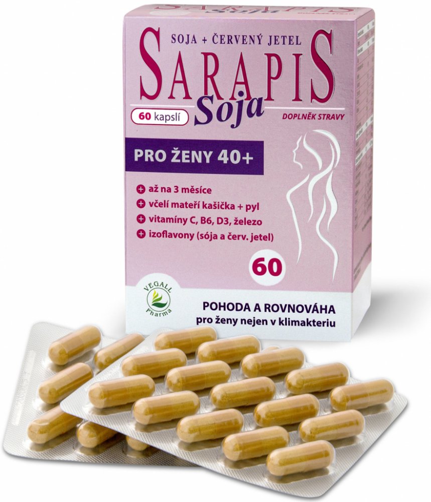 Kombinace látek obsažených v Sarapisu Soja příznivě působí na nepříjemné tělesné projevy klimakteria (tzv. vegetativní syndrom).