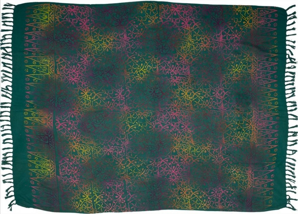 Velký plážový šátek sarong.Tyrkysově zelené pole s pestrobarevným vzorem Lotos.