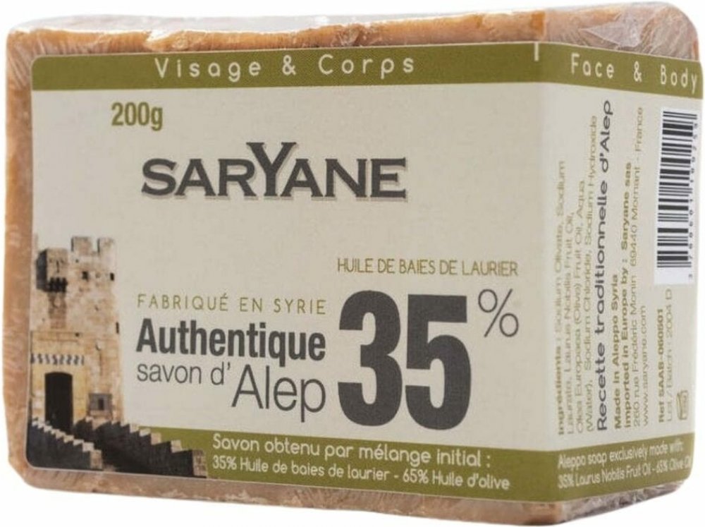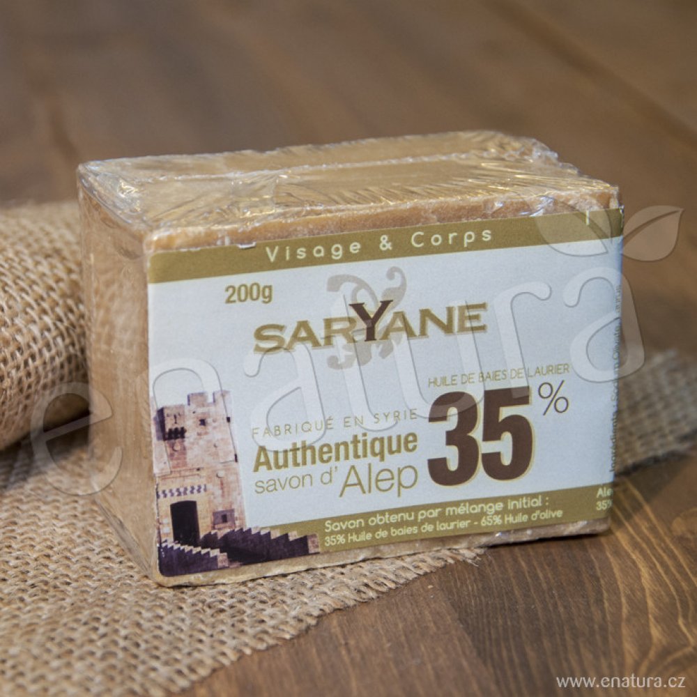 Tradiční syrské mýdlo Aleppo je přírodní, ručně vyráběné mýdlo s výjimečnými vlastnostmi pro péči o pokožku. Obsahuje 35% vavřínového oleje a 65% olivového oleje, který mu dodává silný regenerační a antiseptický účinek. Je ideální pro všechny typy pleti, dokonce i pro citlivou a alergickou pokožku. Aleppské mýdlo je skutečným pokladem péče o pleť, vyráběným po stovky let podle neměnné tradiční syrské receptury. Jeho jedinečné vlastnosti jsou dány vysokým obsahem vavřínového oleje (35%) a olivového oleje (65%) , což z něj činí skutečný elixír pro pokožku. Jak používat: Navlhčete mýdlo vodou a jemnou masáží vytvořte na pokožce pěnu. Důkladně opláchněte teplou vodou. Pro ty, kteří s mýdlem Aleppo začínají, doporučujeme začít s mýdly s nižším obsahem vavřínového oleje (, např. 12%) a postupně si zvykat na vyšší koncentraci. Složení: Olivát sodný, Laurát sodný, Voda, Hydroxid sodný, Chlorid sodný