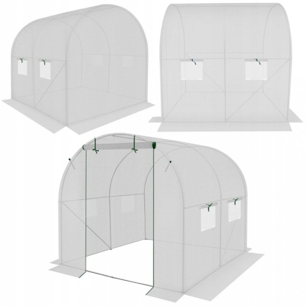 - Součástí balení: odolná povrchová úprava, pozinkovaná ocelová konstrukce, sada šroubů pro montáž, sada klíčů pro montáž, kolíky a napínák skleníku, návod v polštině