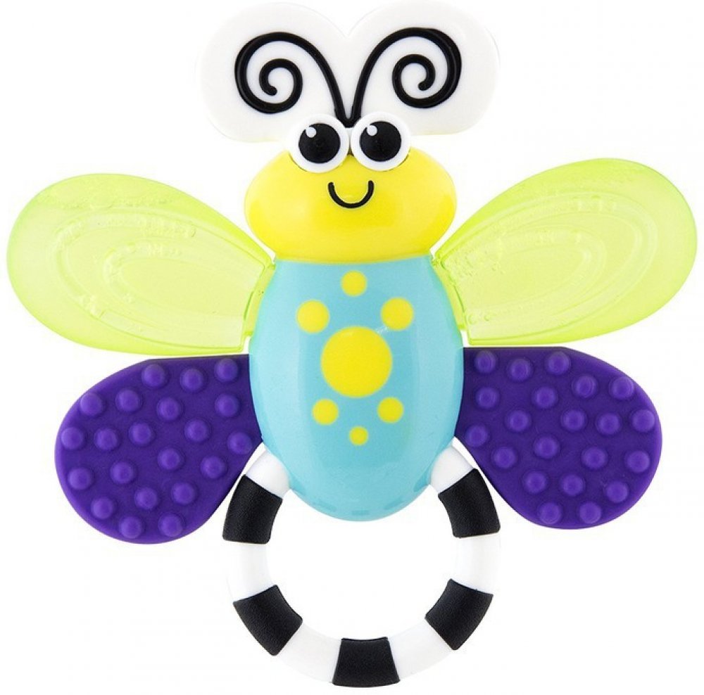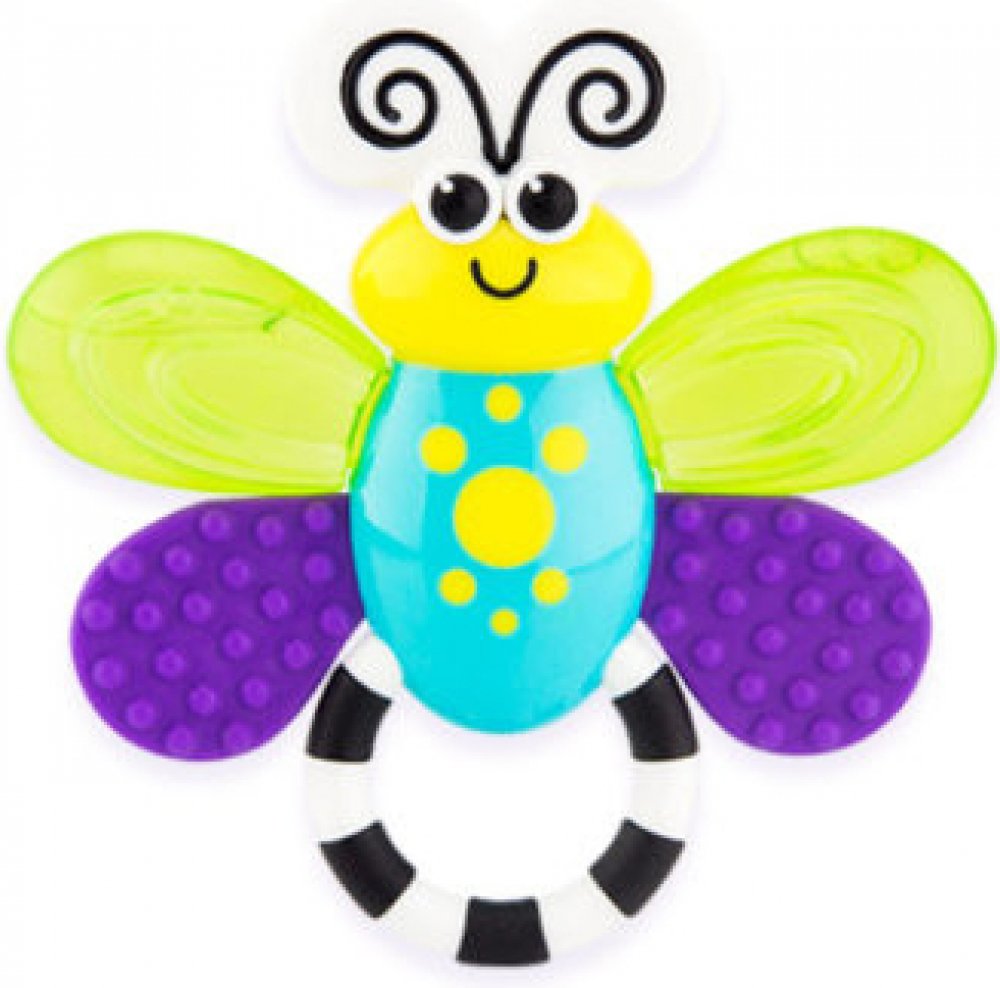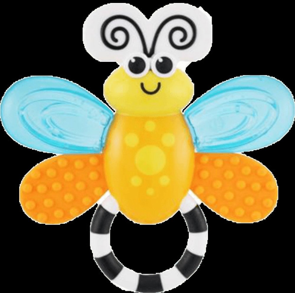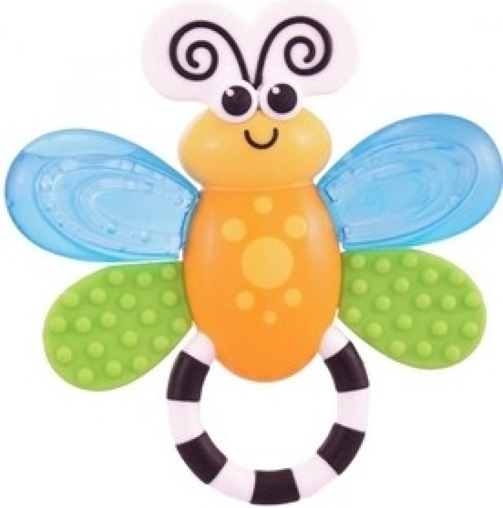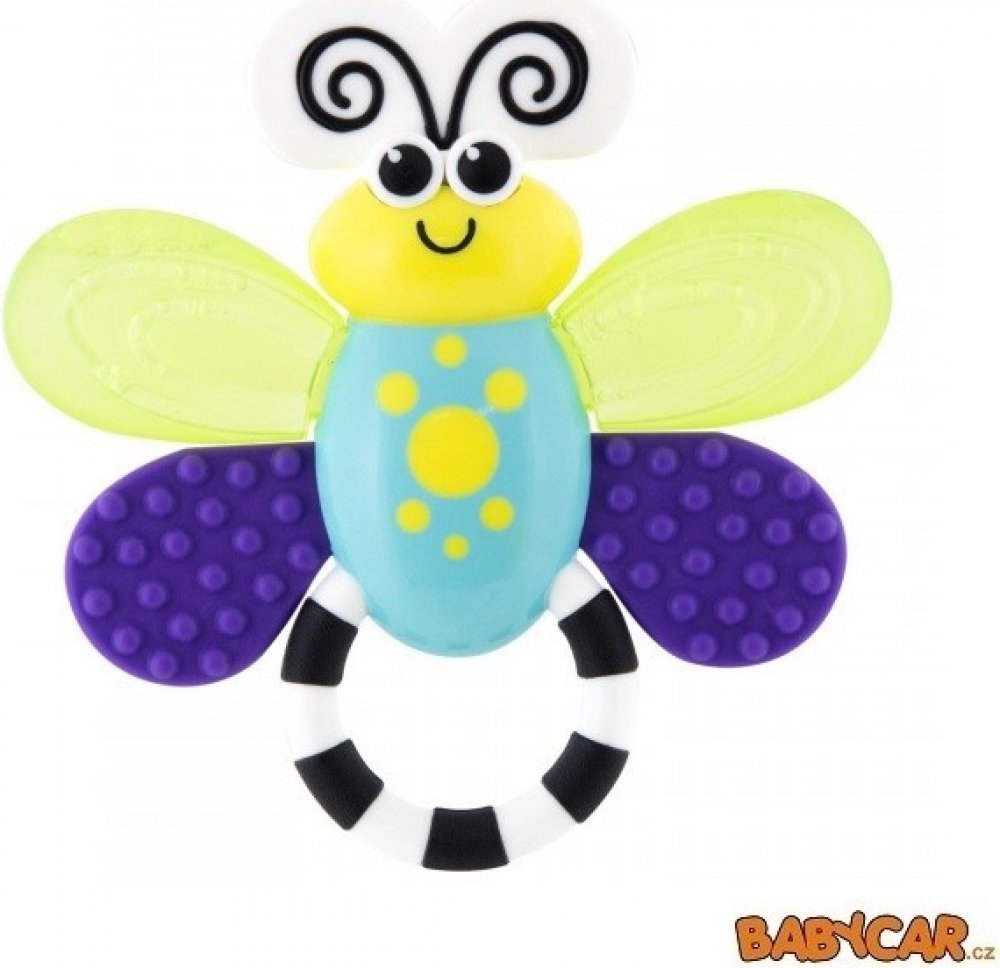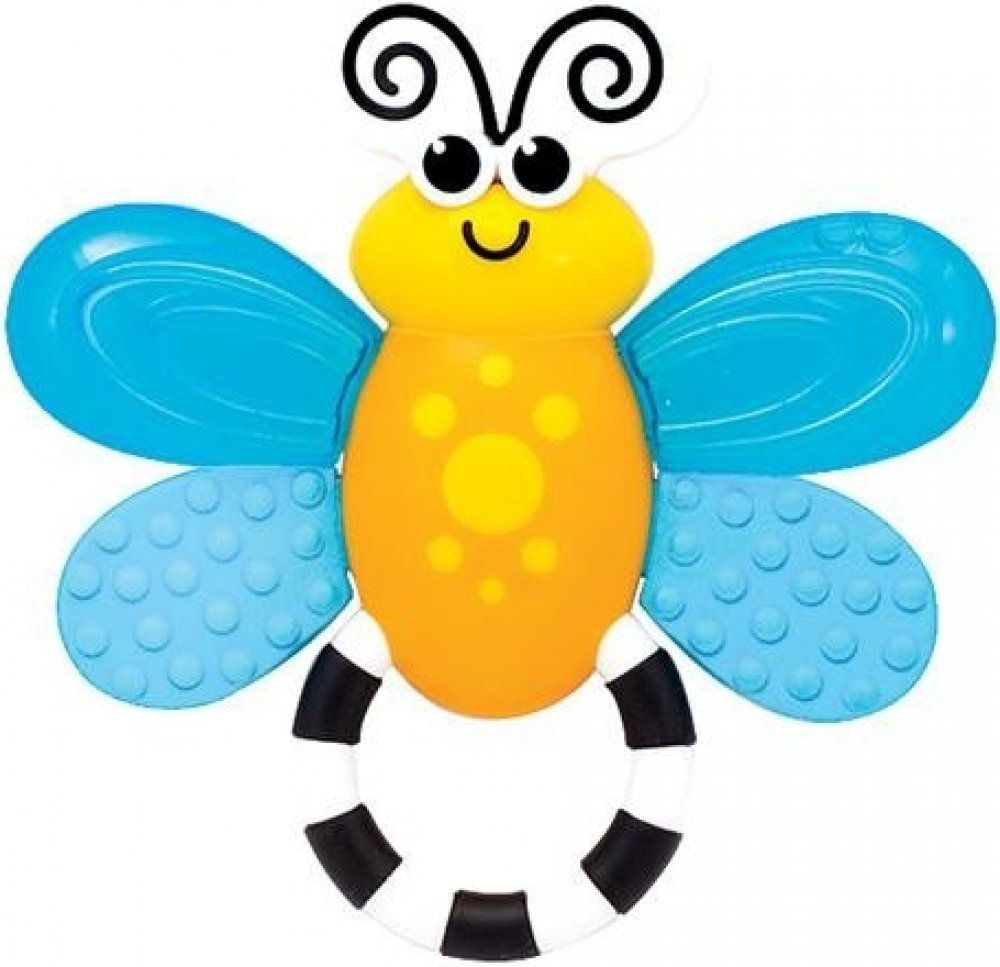 Kousátko s různými texturami a tvary ke zkoumání v ústech. V tomto věku si dítě začíná broukat, kousátko pomáhá dítěti uvědomit si svá ústa a podporuje tak pozdější vývoj od broukání v opakování slabik. Vodou naplněná křídla pomáhají chladit dásně při prořezávání prvních zoubků. Kontrastní barvy pomáhají upoutat pozornost dítěte. Velká držadla pro snadné uchopení. Bez povrchový...