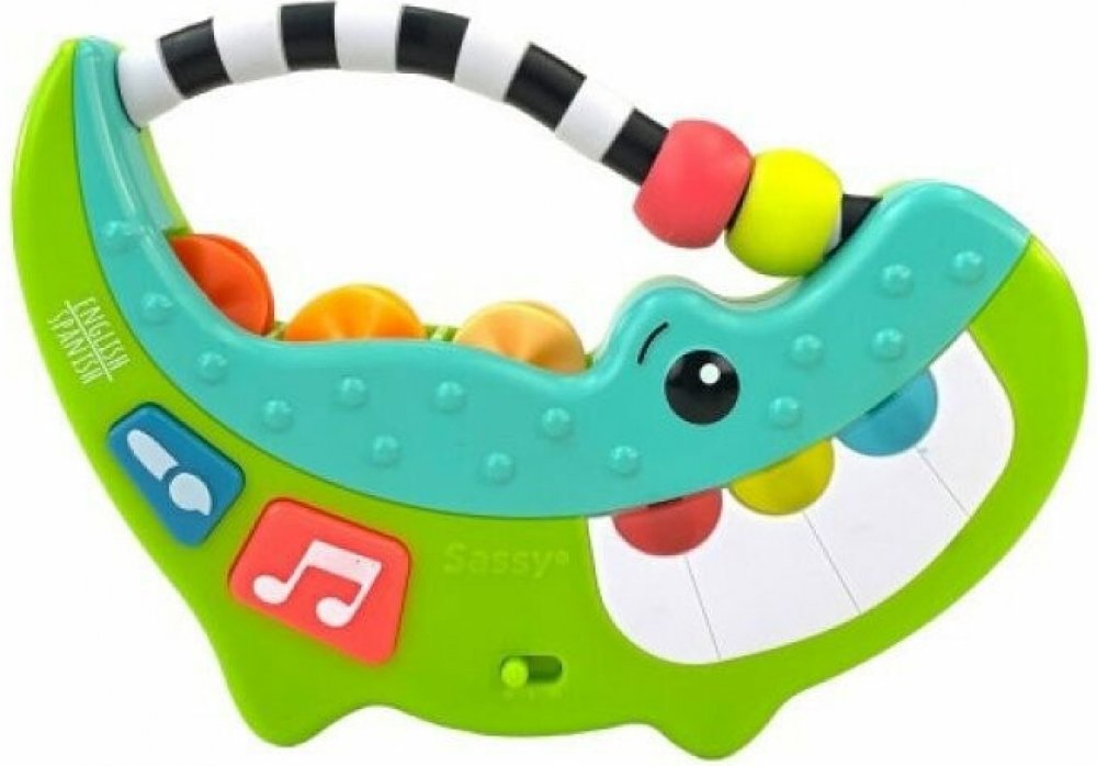 Hudební hračka v podobě roztomilého krokodýla přehrává tři melodie doprovázené barevnými světýlky. Přehrávání melodií se snadno ovládá velkými tlačítky. Hračka nabízí dvě úrovně hlasitosti a možnost vypnutí. Rukojeť s pohyblivými korálky umožňuje snadné uchopení.