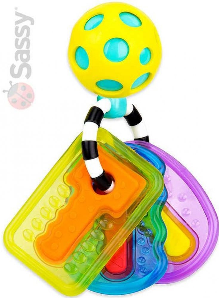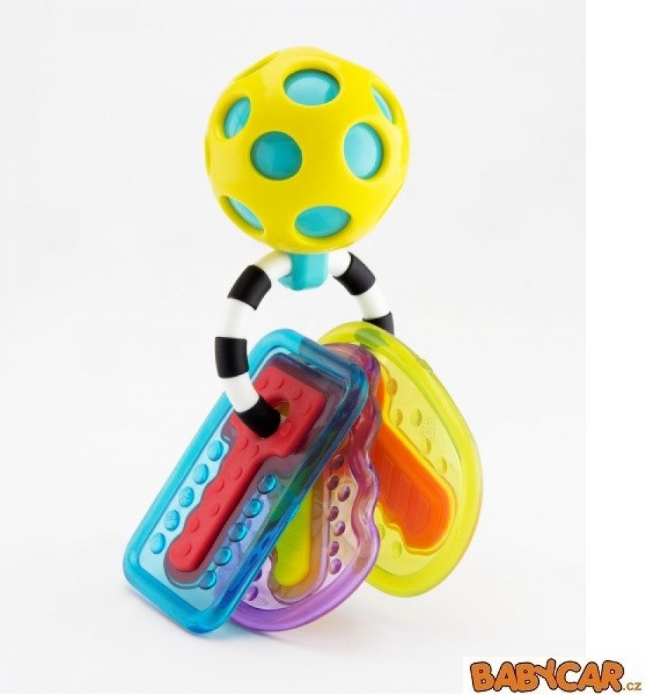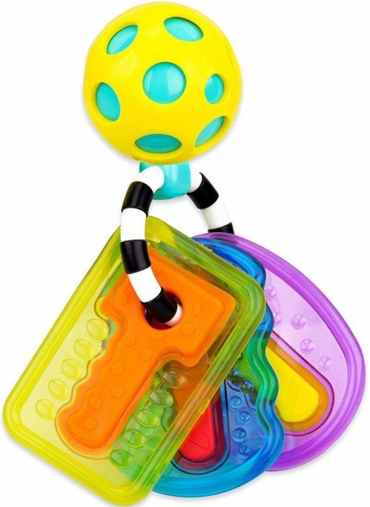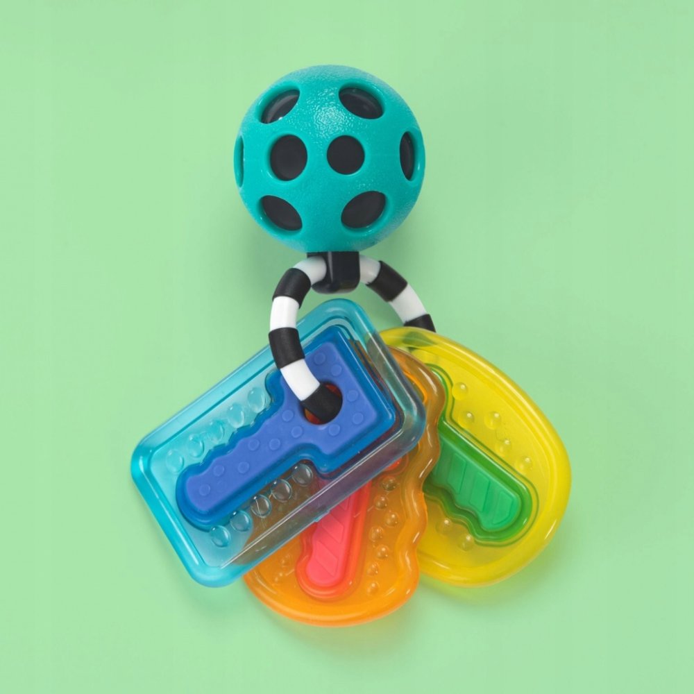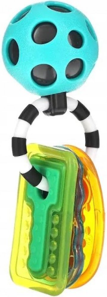Chrastítko ve tvaru klíčenky s míčkem ve výrazných kontrastních barvách je vyrobeno z příjemného materiálu. Různorodé textury lákají dítě ke zkoumání rukama i ústy. Podporuje rozvoj smyslů a motorických dovedností dítěte. Měkké, pružné části.