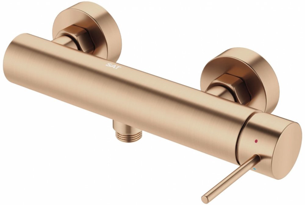 Moderní páková nástěnná sprchová baterie SAT Aurum v designovém kulatém provedení přináší do vaší koupelny spojení stylu, funkčnosti a dlouhé životnosti. Je vyrobena z odolné nerezové oceli s matnou povrchovou úpravou v odstínu broušené rose gold, díky čemuž odolává otiskům prstů i vodním skvrnám, což zvyšuje komfort každodenní péče. Keramická kartuše umožňuje přesné a plynulé ovládání teploty i průtoku vody. S roztečí 150 mm je vhodná pro většinu běžných instalací. Ideální volba pro elegantní koupelny, kde
