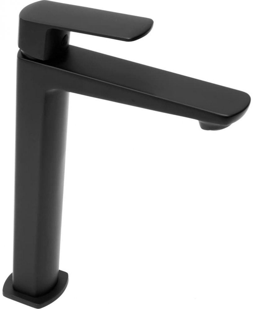Páková stojánková vysoká umyvadlová baterie bez výpusti v barvě černá matná. Průtok baterie je 5 litrů/minutu. Výška baterie je 26,4 cm. Ramínko je ve výšce 20,5 cm. S matným povrchem. ZÁRUKA 5 LET, dostupnost náhradních dílů 10 LET.