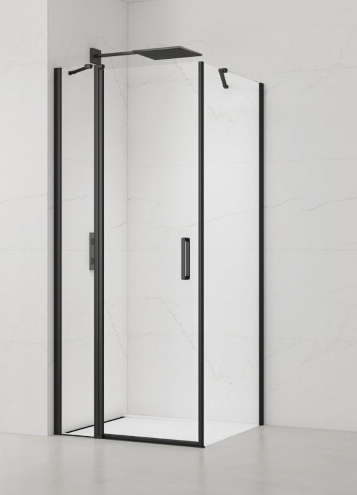 Sprchový kout bez vaničky a barvou profilů v černém matném provedení, výplň je z čirého skla bez dekoru. Produkt je opatřen povrchovou úpravou Easy Clean, která usnadňuje čistění a minimalizuje usazování vodního kamene. Pivotový systém otevírání. Určení - levá i pravá orientace.
